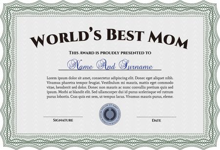 Best Mother Award Template. Vector illustration.With guilloche pattern and background. Cordial design.