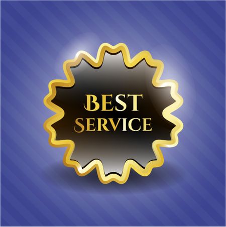 Best service gold shiny badge with blue background
