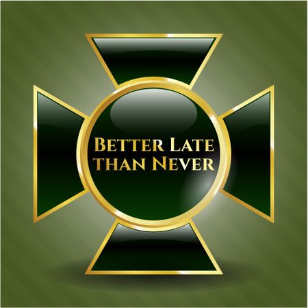 Better Late than Never gold shiny badge