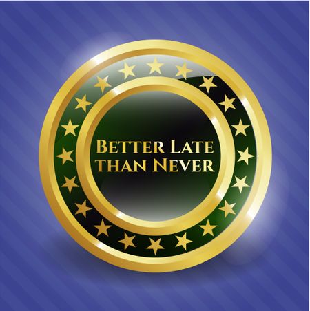 Better Late than Never golden emblem
