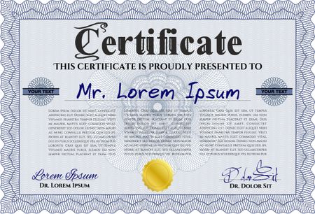 Blue Certificate. Detailed. Complex design. Printer friendly.