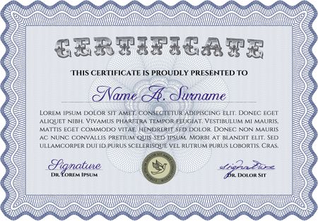 Blue Certificate / Diploma of completion / Design template.