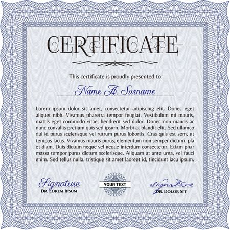 Blue certificate or diploma template.