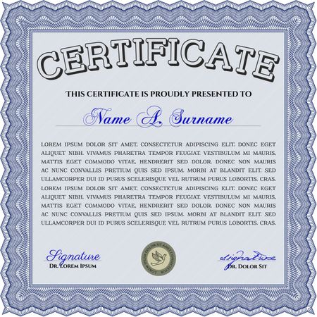 Blue Certificate or diploma template. Cordial design. Customizable, Easy to edit and change colors. Easy to print.