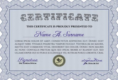 Blue Certificate. Printer friendly. Complex design. Detailed.