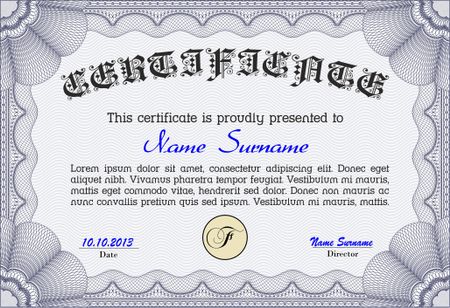 Blue certificate template, complex design.