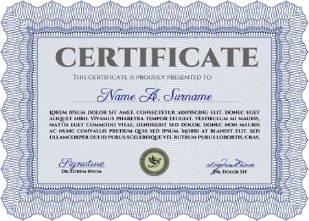 Blue certificate template with sample text