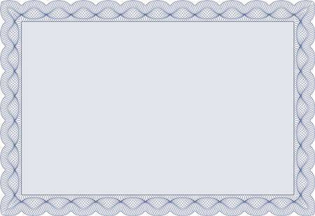 Blue Classic Certificate template. Money Pattern design. With great quality guilloche pattern. Award.