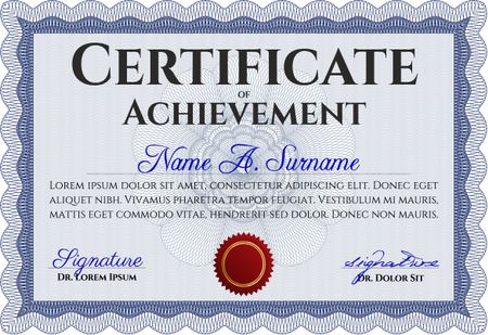 Blue Diploma or certificate template. With complex background. Vector illustration. Lovely design.