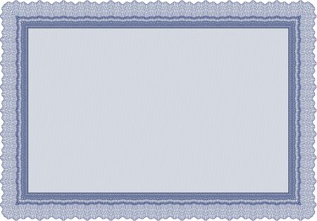 Blue Diploma or certificate template. Lovely design. Vector illustration. With complex background.