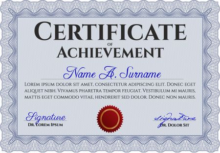 Blue Diploma. Good design. With background. Border, frame.