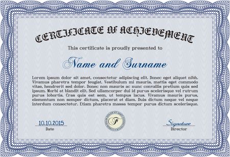 Blue Diploma template or certificate template. With quality background. Vector pattern that is used in money and certificate. Beauty design.