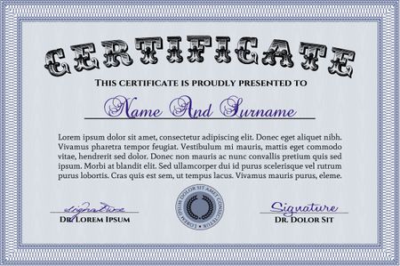 Blue Diploma template. With complex background. Excellent design. Vector illustration.