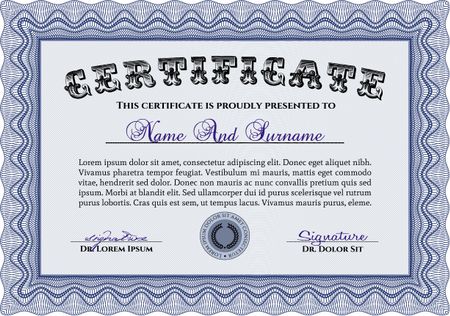 Blue Diploma template. Vector illustration. Excellent design. With complex background.