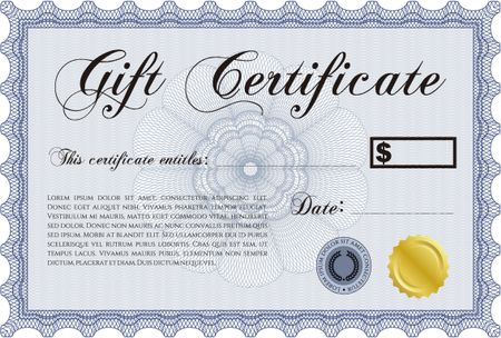 Blue gift certificate templatewith gold seal