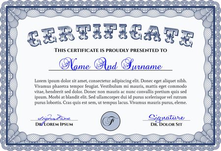Blue horizontal certificate or diploma template