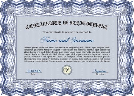 Blue horizontal certificate or diploma template