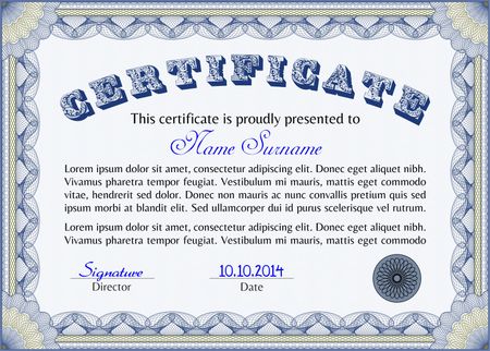 Blue horizontal certificate template.