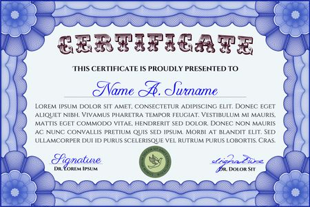 Blue horizontal certificate template