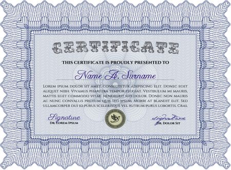 Blue Sample Certificate. Vector pattern that is used in money and certificate. Artistry design. With quality background.