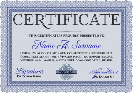 Blue Sample Diploma. Frame certificate template Vector. Elegant design. With linear background.