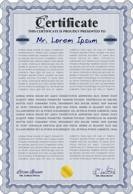 Blue Sample Diploma. With linear background. Frame certificate template Vector. Modern design.