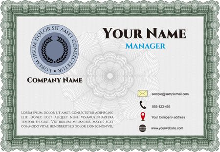Business card, vintage style. Elegant design. Vector illustration. With guilloche pattern.