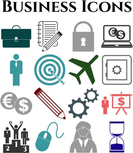 business icon set. 16 icons total. Quality Icons.