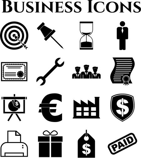 business icon set. 16 icons total. Universal and Standard Icons.