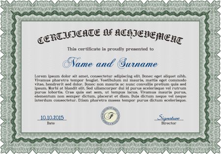 Certificate of achievement. With complex linear background. Retro design. Vector certificate template. Green color.