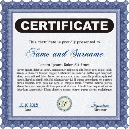 Certificate of achievement. Diploma of completion.With guilloche pattern. Excellent design.