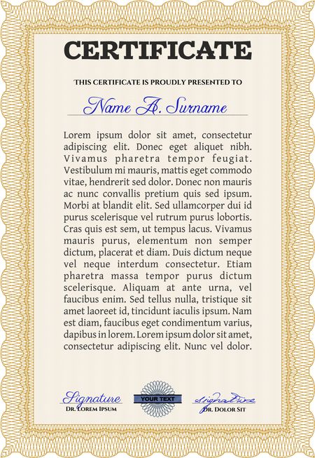 Certificate of achievement. With guilloche pattern. Frame certificate template Vector.Modern design.
