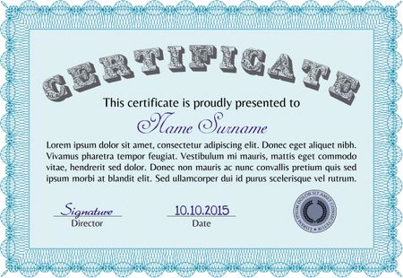 Certificate of achievement. With guilloche pattern. Vector illustration.Superior design.
