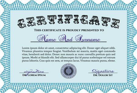 Certificate of achievement. With quality background. Diploma of completion.Sophisticated design.