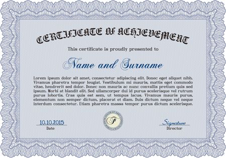 Certificate of achievement. Sophisticated design. Complex background. Diploma of completion.