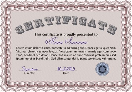 Certificate of achievement template. With complex linear background. Excellent design. Vector certificate template.