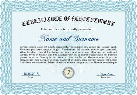 Certificate of achievement template. Easy to print. Vector pattern that is used in currency and diplomas.Artistry design.