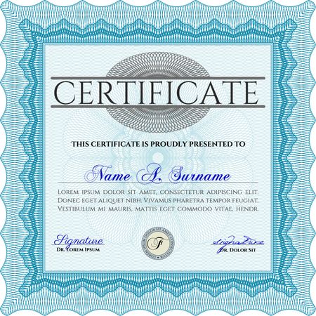 Certificate of achievement template. Lovely design. Vector illustration.With complex linear background.