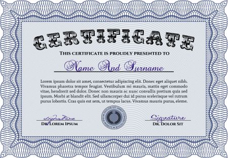 Certificate of achievement template. With quality background. Border, frame.Superior design.