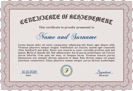 Certificate of achievement template. Vector pattern that is used in money and certificate.With complex background. Good design.