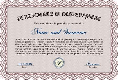 Certificate of achievement template. Vector pattern that is used in currency and diplomas.Printer friendly. Complex design.
