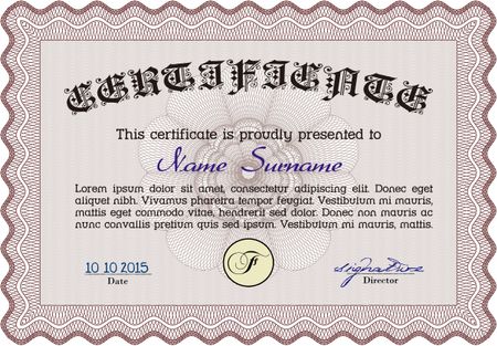 Certificate. With background. Vector pattern that is used in currency and diplomas.Cordial design.