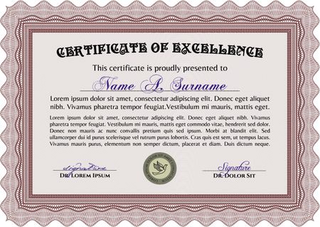 Certificate. Border, frame.Cordial design. With guilloche pattern.