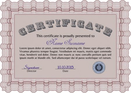 Certificate. With complex background. Complex design. Vector pattern that is used in currency and diplomas.