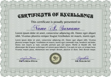 Certificate. With complex background. Complex design. Vector pattern that is used in currency and diplomas.
