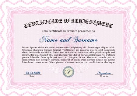Certificate. With complex background. Complex design. Vector pattern that is used in currency and diplomas.