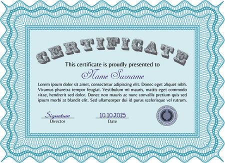Certificate. With complex background. Complex design. Vector pattern that is used in currency and diplomas.