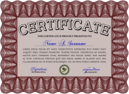 Certificate. Detailed. Printer friendly. Complex design. Red color.