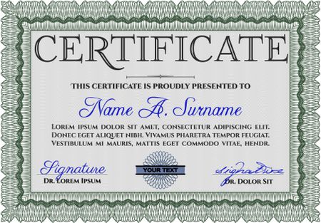 Certificate. Detailed. Printer friendly. Complex design. Green color.