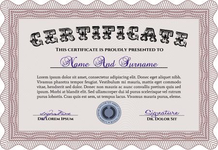 Certificate, Diploma of completion; design template with guilloche pattern, border, frame.